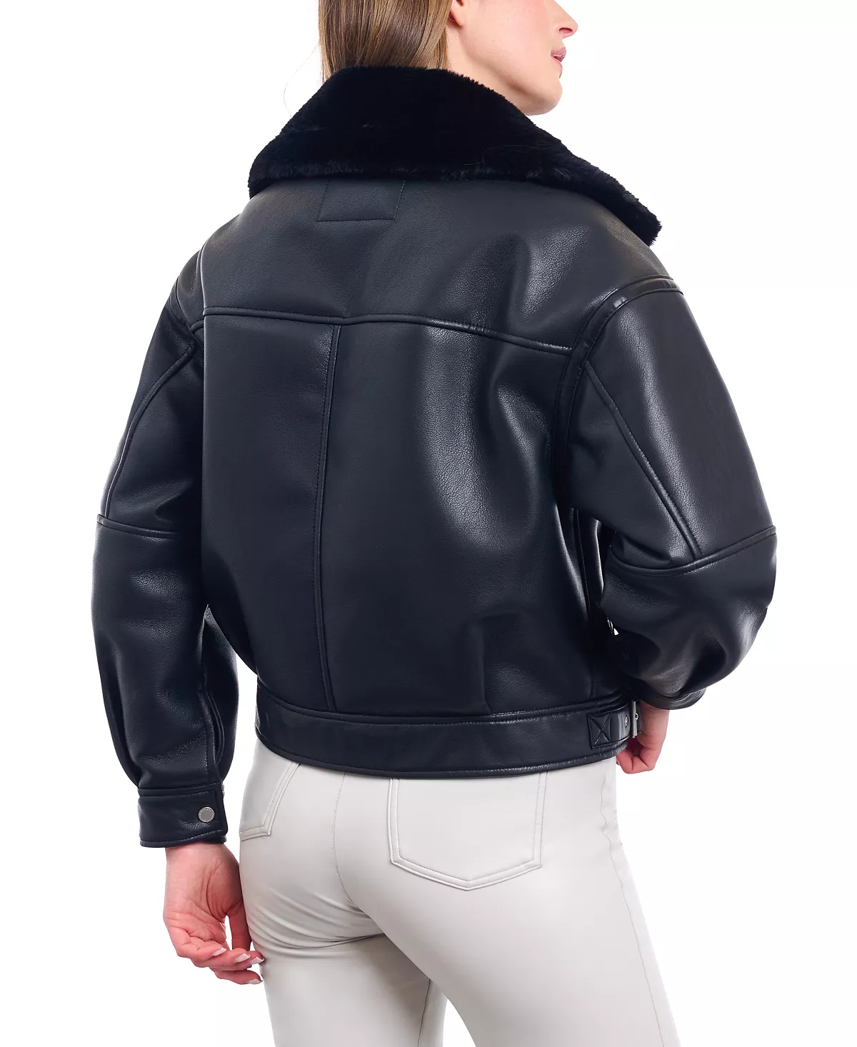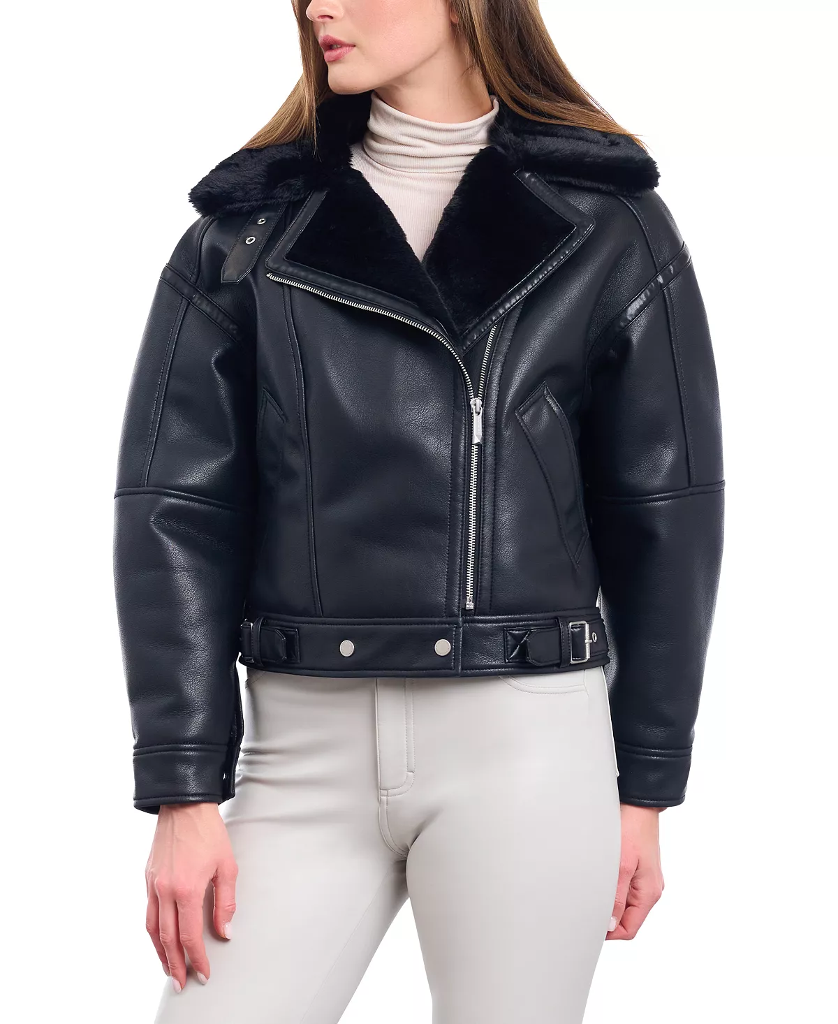 • Polished Silver Hardware: Enhances the jacket’s chic, urban vibe.