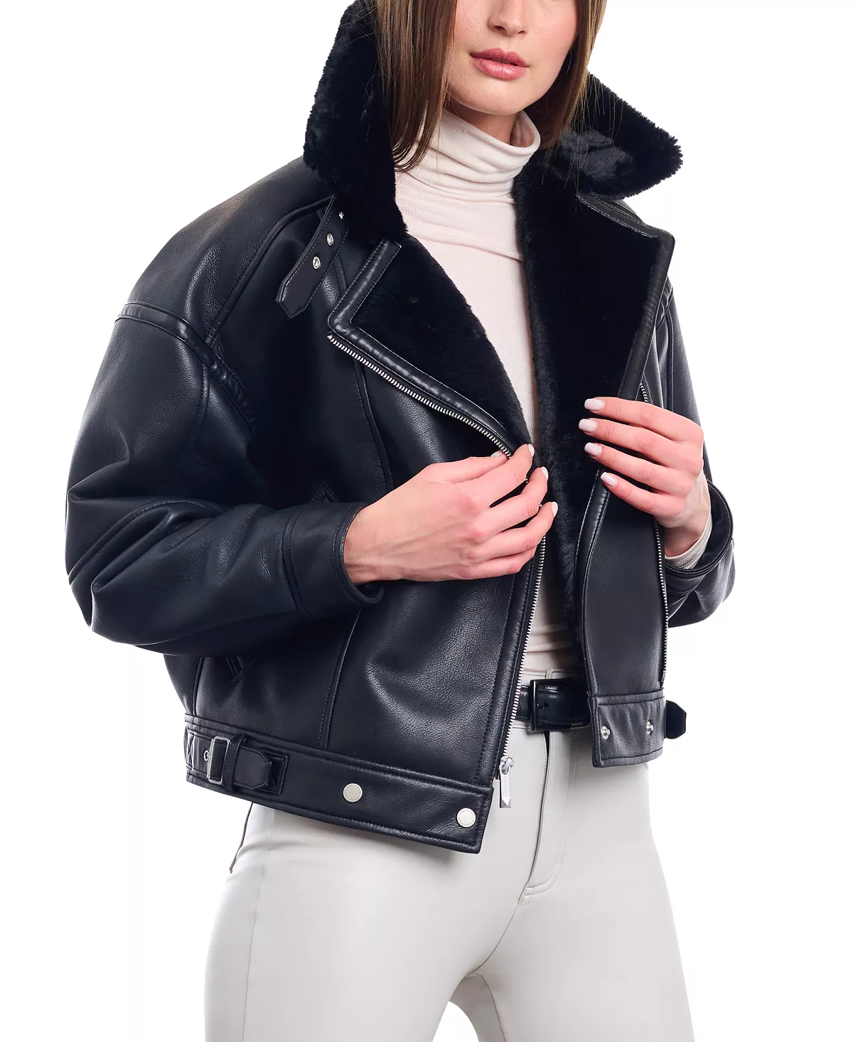 • Elegant Edge: Combines biker-inspired elements with a refined, feminine fit.