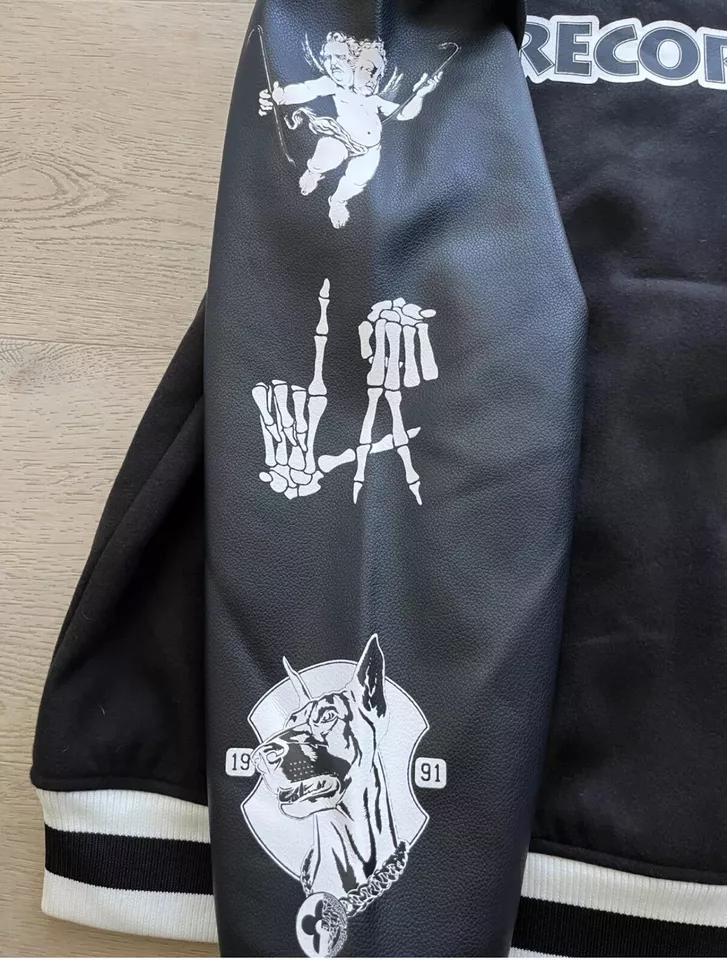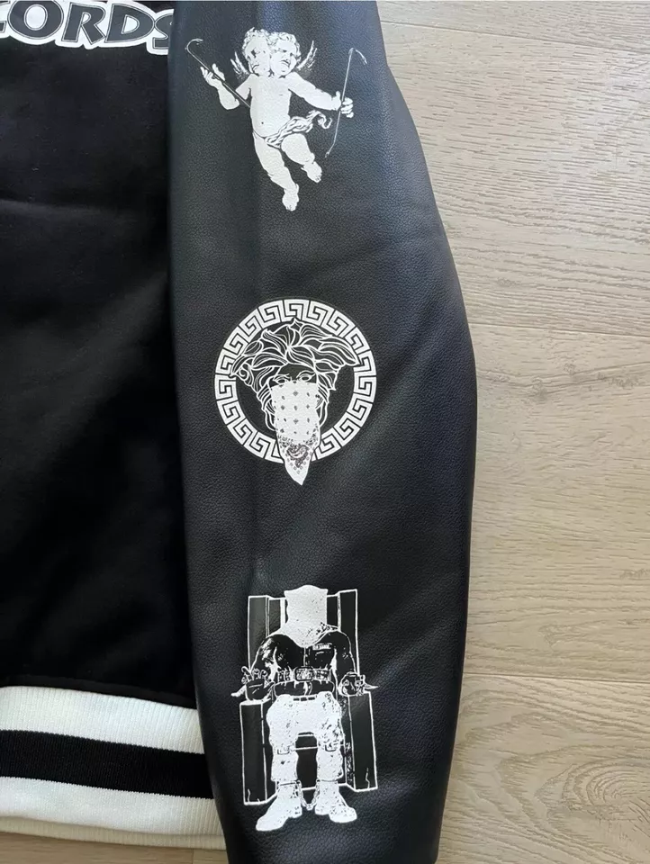 Classic Design: Traditional varsity jacket silhouette with a striking black and white contrast.