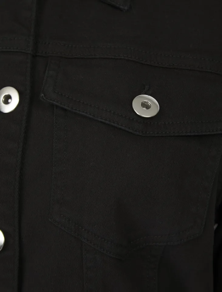 Crafted from premium denim, the Black Denim Jacket Womens provides durability, a soft feel, and a flattering fit. The tailored design enhances your silhouette while allowing freedom of movement and layering over tops, blouses, or sweaters. Reinforced stitching and classic button-up closure ensure long-lasting wear. With its modern yet timeless look, this jacket is suitable for casual, semi-formal, and outdoor occasions, making it a versatile must-have for any wardrobe.