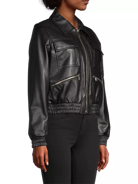 Designed to flatter every body shape, it features a smooth inner lining for comfort and ribbed cuffs and hem for a snug fit. The high-quality zippers and polished details make it stand out, while its sleek black color ensures versatility with any outfit. From city streets to evening events, the Black Leather Ladies Bomber Jacket delivers unmatched elegance and everyday practicality.