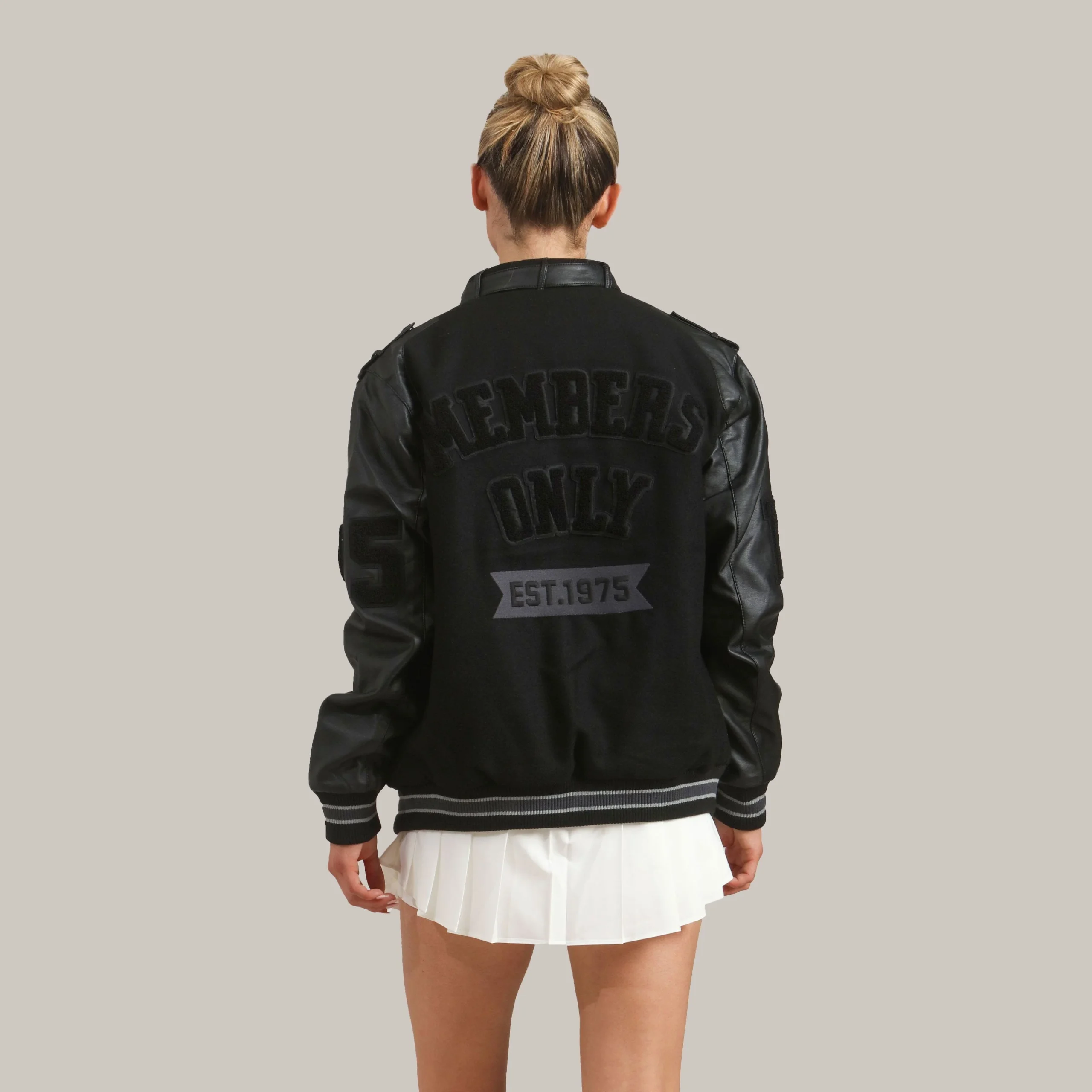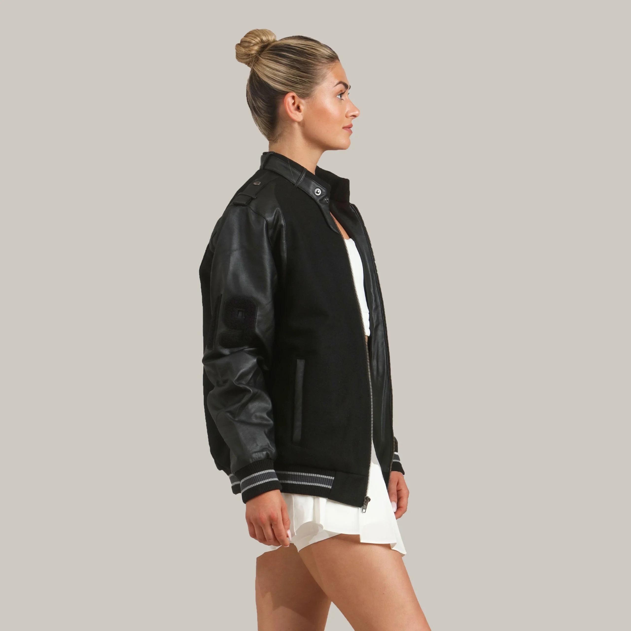 Black Leather Varsity Jacket Womens Timeless