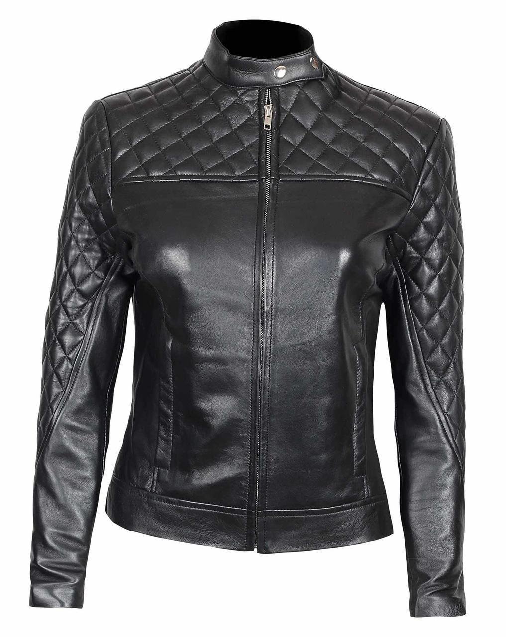 Black Quilted Leather Biker Jacket