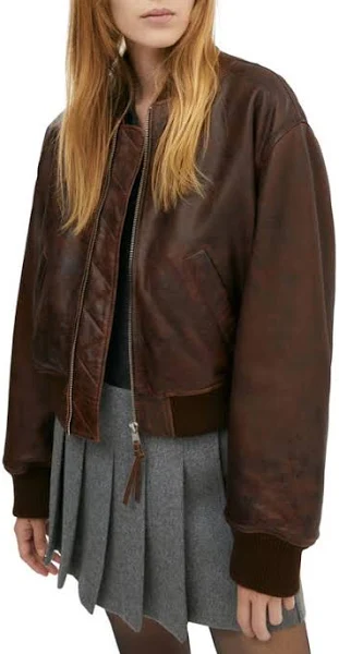 Ideal for layering in cooler weather, the brown leather bomber jacket for women ensures a flattering fit while allowing freedom of movement. Lightweight yet durable, it pairs effortlessly with jeans, skirts, or dresses, making it a versatile and stylish addition to any wardrobe.