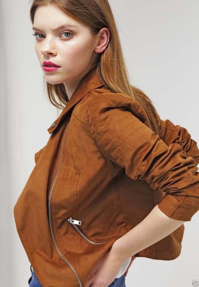 This jacket is a versatile addition to any wardrobe, easily paired with jeans, skirts, or dresses. The smooth inner lining ensures comfort, while functional details like side pockets and buttoned cuffs add both style and practicality. With its durable construction and elegant design, the Brown Suede Jacket For Women is a must-have piece that combines fashion, comfort, and durability.
